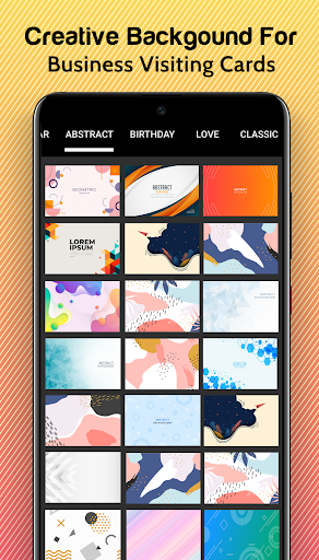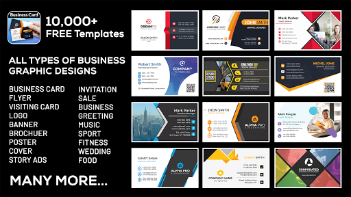 libero Visitando Card Maker app dispone di 75 disegni creativi. I disegni grafici realizzati con biglietto da visita disegni assomiglia biglietto da visita creato da graphic designer professionista.