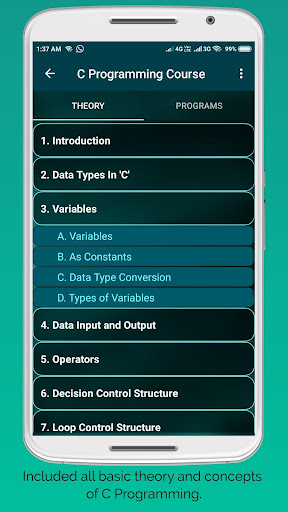 Il corso di programmazione C è tutto in un'applicazione per imparare il linguaggio di programmazione C (linguaggio C).