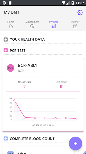 Content is tailored to the user’s profile. They are able to keep track of their physical and emotional wellbeing, keep a record of test results and upcoming appointments, listen to mindfulness modules, and learn about CML and its treatment.
