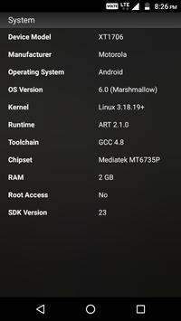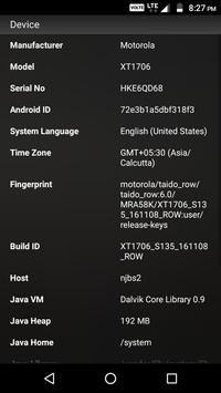: detailed information about your Android OS, runtime, kernel and SDK.