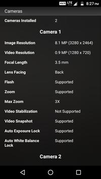 : diagnostic tool for your camera hardware, reports information about picture resolution, lens, focal length and other camera features.