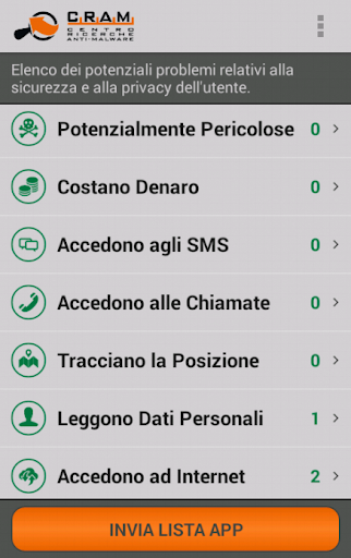 CRAM App Analyser svolge la funzione di “consulente della privacy”, permettendo di visualizzare le app che possono rappresentare potenziali problemi alla TUA sicurezza e alla TUA privacy.