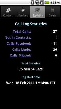 Note: The delete tab will permanently remove entries from your call log so make sure you properly set the criteria.