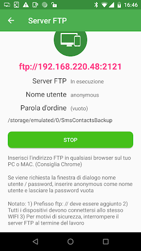 - Supporta il server FTP per trasferire i file di backup