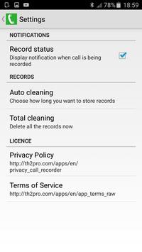 Auto-cleaning give you the advantage to choose how long you want your recorded calls stay on your phone , you can also delete all records right now choosing the Total cleaning option.