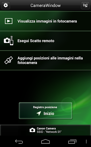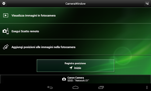 - Se CameraWindow non è in grado di connettersi alla fotocamera, arrestare l'applicazione mediante la funzione di gestione delle applicazioni disponibile nel menu delle impostazioni del dispositivo Android e riavviarla selezionando l'icona di CameraWindow.