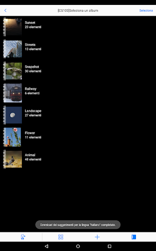 Connect Station è un'applicazione semplice da utilizzare: basta avviarla per individuare un dispositivo di archiviazione di foto sulla rete wireless. Naviga nella libreria di foto sul dispositivo di archiviazione e visualizza le immagini a pieno schermo. Rinomina gli album e aggiungi commenti utilizzando la tastiera su schermo del tuo dispositivo smart. Puoi aggiungere immagini alla libreria di foto archiviate sul dispositivo dal dispositivo smart e trasferire le immagini dal dispositivo smart al dispositivo di archiviazione di foto.