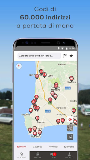 CARAMAPS offre più di 60.000 luoghi per il viaggio in camper direttamente disponibili in un colpo d’occhio : area sosta, parcheggio, campeggio, agriturismo o solo un luogo per parcheggiare o pernottare durante il vostro viaggio.
