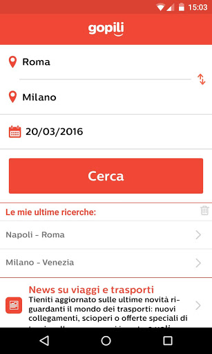 Installa l’app Gopili per viaggiare di più spendendo di meno! E confronta tutte le soluzioni di trasporto: treni, pullman, voli e passaggi in auto