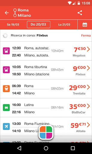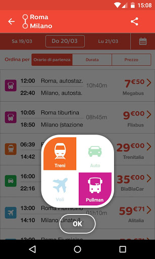 L’applicazione ti permette di ordinare i biglietti per prezzo, orario di partenza e durata perché tu possa scegliere la soluzione di trasporto che meglio si adatta alle tue esigenze.