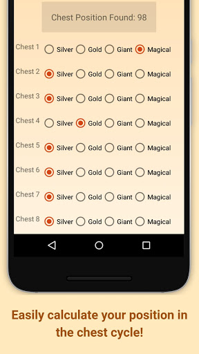Calcola in tutta semplicità la tua posizione nel ciclo di forzieri con un Calcolatore facile da usare e poi tieni traccia della tua posizione per sapere quando riceverai i forzieri argento, oro, gigante o magico.