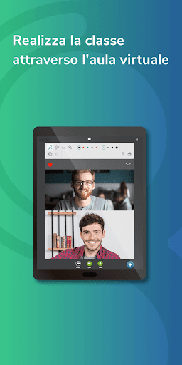 Insegna nella aula virtuale più avanzata, interagisci con gli studenti attraverso una video chat, una lavagna virtuale dove è possibile caricare documenti, editor di testi, invio di documenti, condividere lo schermo, ecc. Insegna all'interno della nostra app!