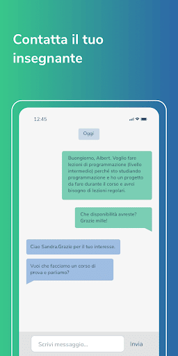 Siccome sappiamo che a volte non è facile scegliere, ti permettiamo di fare una lezione di prova gratuita di 15 minuti, in modo che potrai conoscere il tuo insegnante, dirgli quali sono i tuoi obiettivi e tracciare il percorso di apprendimento che ti farà crescere.