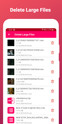 The storage cleaner app can scan and delete many types of duplicate files such as duplicate images, duplicate videos, duplicate audios and other duplicate files.Delete cache, residual files and temp files to reclaim storage space. Cleaner can easy free up valuable storage space on your device.