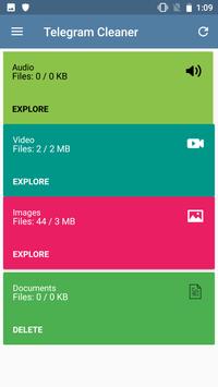 will keep you updated how many media files or documents you have on Telegram, and alert you when it is best to to remove them.