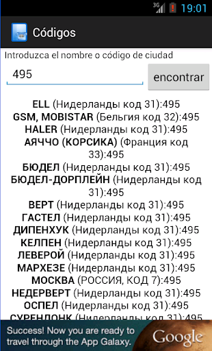 Programa para encontrar el código de área telefónica o país. Con él, usted puede llamar siempre que necesite.