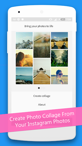 Collage Maker per Instagram ti consente di accedere con il tuo account Instagram, seleziona le tue immagini, quindi creare fantastici collage fotografici dall'aspetto straordinario dalle tue foto dal tuo Instagram!