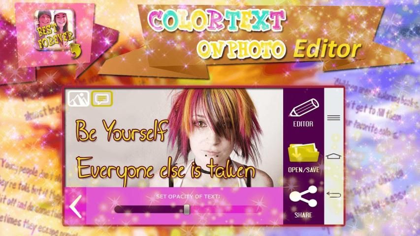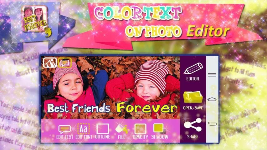 There's no denying the fact that 20,000+ users downloaded Color Text On Photo Editor latest version on 9Apps for free every week! Players who wants to play both because this app is good and because the app are response quickly at any time. This hot app was released on 2015-10-23. To read more info about mobile apps, you can click on 9Apps.