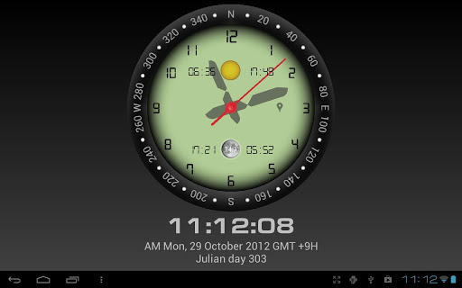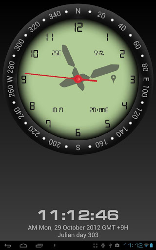 ComboClock is an analog clock with a digital feel. It is designed for both phones and tablets, however, phones are forced to portrait mode.Since ComboClock was developed with astronomy on mind, it provides not only local and UTC times, but also weather data, sun/moon rise & set times, sidereal time and Mars Coordinated Time (Airy Mean Time). The circumference of the chronograph is a functional compass which automatically detects your local magnetic declination.ComboClock is accompanied by a 4x2 weather widget which also shows the current phase of the moon.Essential Features* Local time* Universal time* 12/24H display* Sun/moon rise & set times* Moon phase and age* Sidereal time, meridian constellations* Martian AMT* Weather data (C/F)* Integrated compass* Auto-declination on/off* Date & Day of year* Synchronised with system time* 4x2 weather widget/moon phase* Tested on phones and tabletsThis application is believed to be reliable and accurate, however, errors inherent to the human factor or operating system implementation cannot be ruled out entirely.BEFORE YOU PURCHASE:1. Please make most efficient use of google Play's narrow refund window.2. Please contact the author by email, if you have any pre-sales questions.Japanese: ご購入をお考えのお客様へ、本アプリーに関するご質問は日本語でもお受けしております。お気軽にお問い合わせください。Keywords: widget, clock, watch, weather, local time, sidereal time, moon phase, universal time, GMT, UTC, Martian time, MTC, AMT