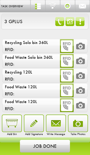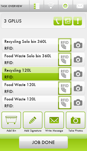 Aggiungi nuove attività / ordini, interagire con la pesata e scansionare il chip del bin di RFID. Codici. Se necessario, l'operatore può comunicare con l'ufficio tramite il sistema di ticketing interno