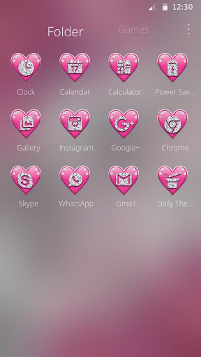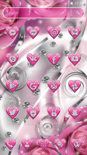 Replace Icons - Crimson Pink Hearts Diamond Theme replaces your default icons with astonishing, breathtaking, vibrant, fashionable, cool icons and keyboard with emoji keyboard.