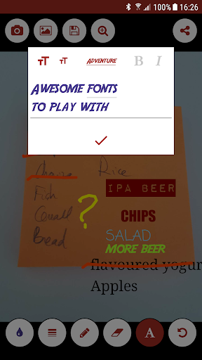 Fai la tua lista della spesa su carta o lavagna?Consideri noioso creare e mantenere elenchi di compiti scrivendo con il cellulare?Con questa applicazione puoi semplicemente scattare una foto della tua lista dei frigoriferi per accucciare gli elementi semplicemente con il tuo dito.Puoi anche condividere i tuoi progressi con la famiglia o gli amici da completare tra tutti.