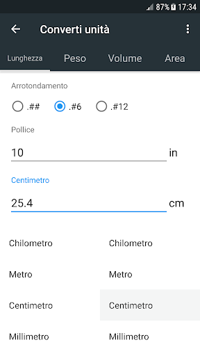 • Converti unità: ad esempio pollice in centimetro, libbra in chilogrammo e altro ancora.
