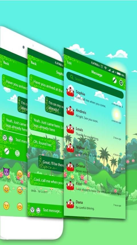 Make your reak wish come true with the amazing green cute jungle sms theme app.