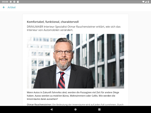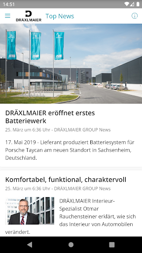 Notizie: Resta aggiornato con le ultime notizie.Attraverso le notifiche push puoi vedere immediatamente ciò che è entusiasmante nuovo dal mondo del Gruppo Dräxlmaier.