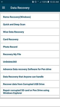 Recover deleted data from USB, Memory Card, Mobile, Hard Disk and Computer with the help of Data Recovery Guide. Recover deleted Audios ,Recover / Retrieve deleted song, Recover Documents from gallery and from any other storage, Recover All Type of files (Support different extensions) with the help of data recovery guide.