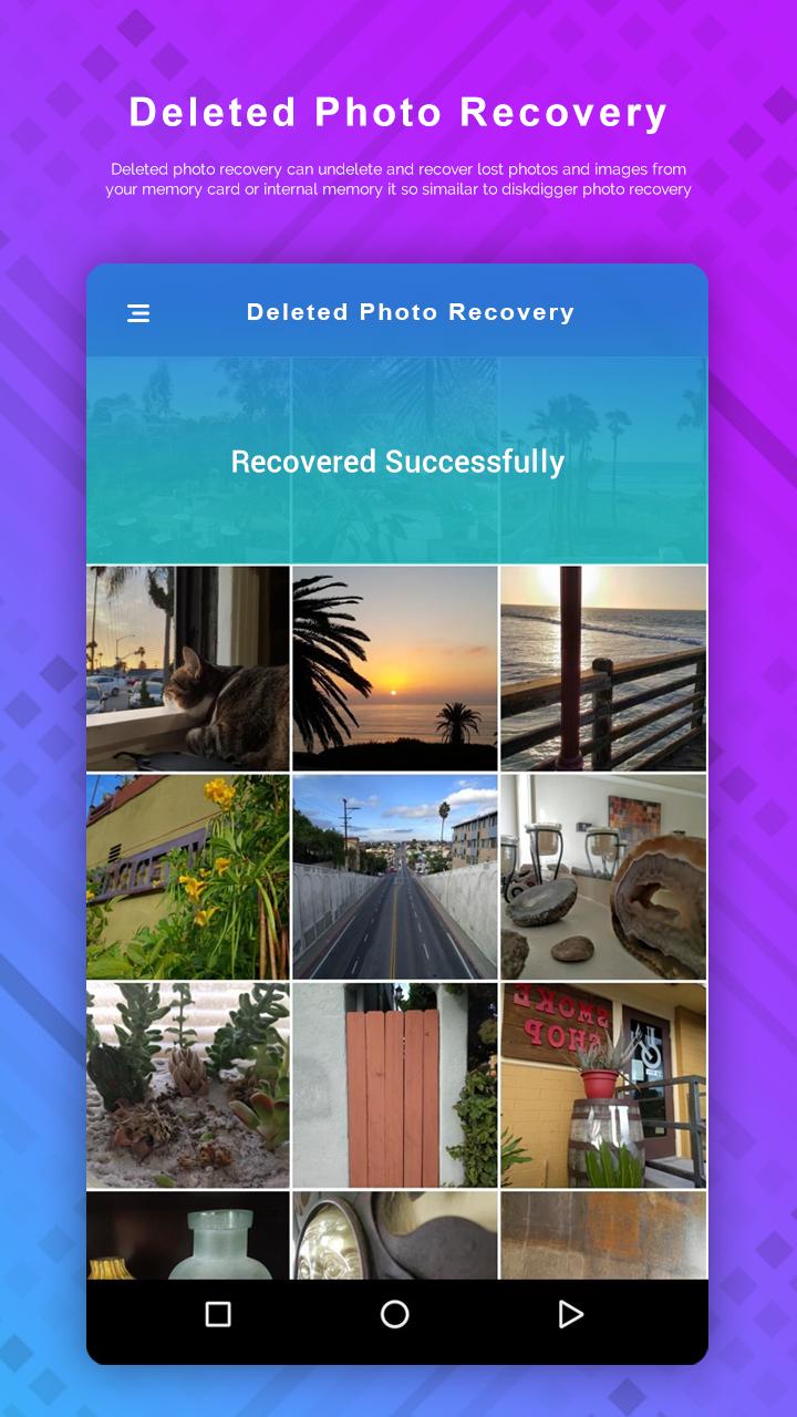 You have accidentally deleted important photos but there is no way to recover them. Do not worry, Photo Recovery App gives you free scanning capabilities, you can view photos and restore them for free.