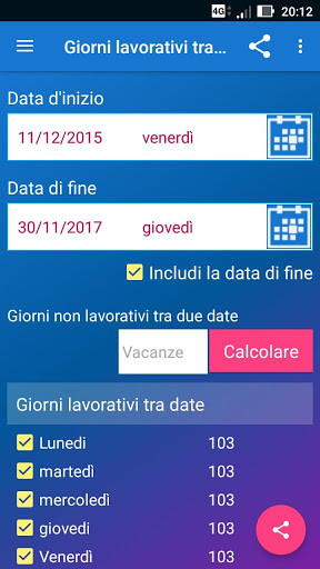 ► Calcola quanti giorni lavorativi e non lavorativi tra due date.