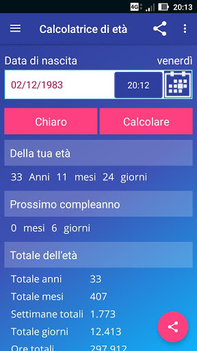 ► Calcola la tua età precisa in anni, mesi e giorni come calcolatrice dell'età.