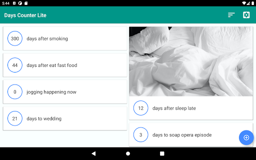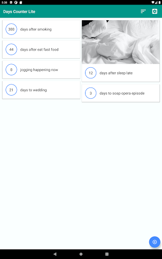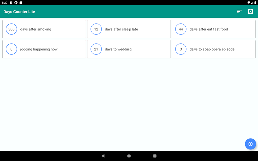 Days Counter Lite aiuta a tenere traccia di quanti giorni passati dopo che si è verificato un evento, o quanti giorni rimasti a un prossimo.