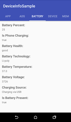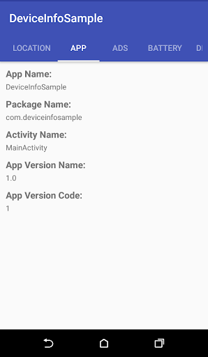 This app is aimed at developers and has no other functionality than demonstrating the Device Info library functionality.
