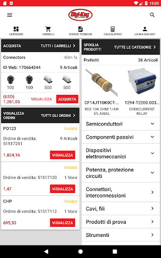 L'app Digi-Key offre fruibilità immediata di una delle più vaste selezioni al mondo di componenti elettronici a magazzino.