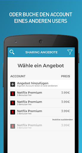 Netflix da 4 € - Nessun problema, selezionare un'offerta di condivisione adatta e utilizzare l'account di un altro utente.