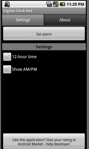 Digital clock Red is a widget that is one of the many beautiful clocks that will be placed by me. The application is available in 2 sizes.The clock in the size 2x1 displays hour and minute. The second shows the size of 3x1 extra seconds. The clock allows you to select 1224 hour time.After pressing on the widget, you can go to the alarm.Widget is lite, and dont dry your battery. The clock turns off with the screen when you turn off device.The clock is also resistant to the task killer39;y. Do not stop when you force stopping the application.Any opinions would be appreciated. If you find a problem, please write what the problem is, and enter the device name.Write to me: android@fratczak.org For comments, unfortunately I can not answer. If you want various color, write to me on email and tell me which color you prefer :