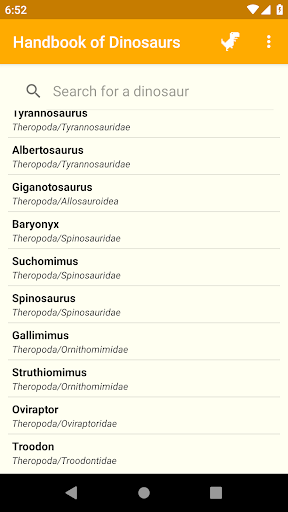 Features of the Handbook of Dinosaurs app