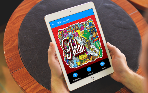 - Create your name above the doodle art and select the font and color.