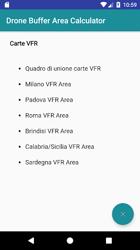 Tramite le opzioni di menù è possibile scaricare e visualizzare il regolamento ENAC e le carte VFR Italiane.
