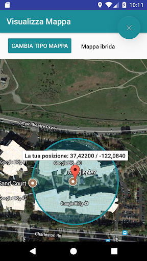 -Visualizzare l'area appena calcolata sulla mappa (è possibile scegliere tra quella satellite, stradale o ibrida)