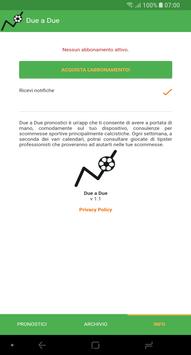 Due a Due pronostici è un'app che ti consente di avere a portata di mano, comodamente sul tuo dispositivo, consulenze per scommesse sportive principalmente calcistiche. Ogni settimana, a seconda dei vari calendari, potrai consultare giocate di tipster professionisti che proveranno ad aiutarti nelle tue scommesse.