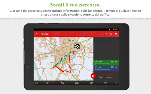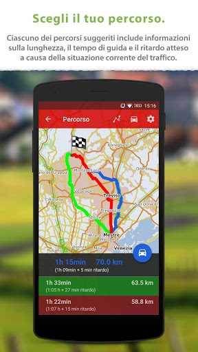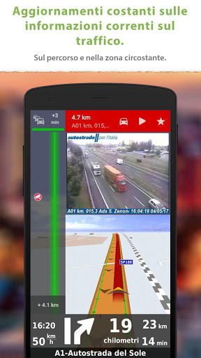 + Guida intelligente del percorso utilizzando precise informazioni sul traffico e telecamere del traffico, in tempo reale.