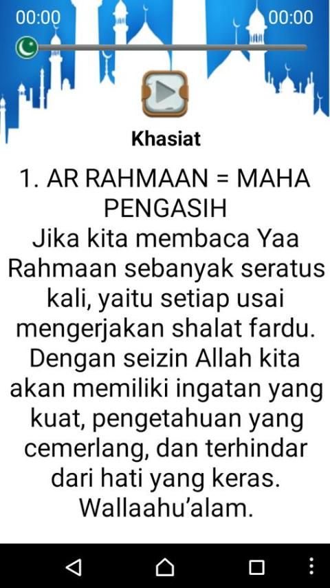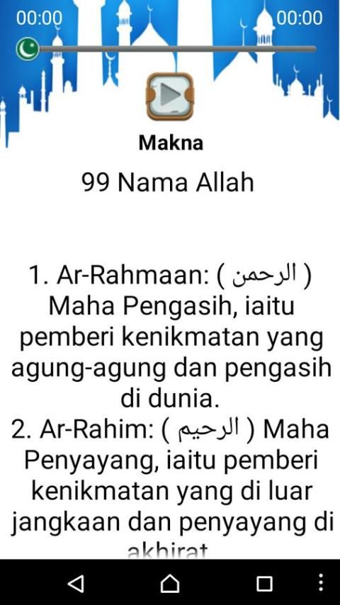 Besides educational applications Muslims is equipped with MP3 audio zikr Divine Name, the benefits of reading the Divine Name, benefits and virtues of remembrance 99 names of Allah