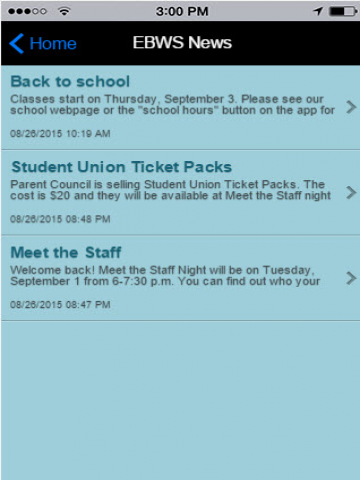 This app was designed to provide updates and information for parents of Ecole Barrie Wilson school.