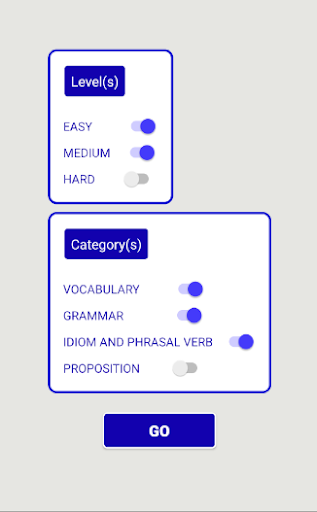 e per quattro tipi (vocabolario, grammatica, idiomi, proposizioni)