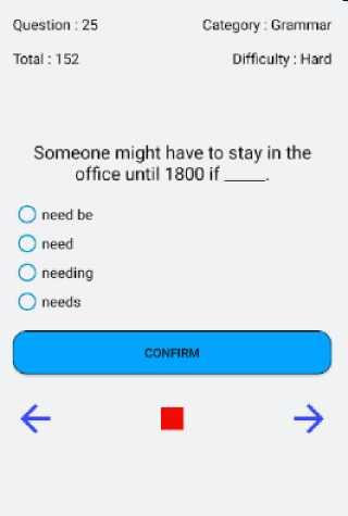 & gt;L'app è alimentata da un test ECL adattivo.In questo test, la difficoltà della domanda viene modificata in base al livello di inglese ECL dell'utente.