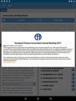 The official mobile application for the 44th Annual Meeting of the European Finance Association (EFA) taking place in Mannheim, Germany, from August 23 to 26, 2017. The EFA 2017 official mobile application helps users navigate the conference by providing the following features: