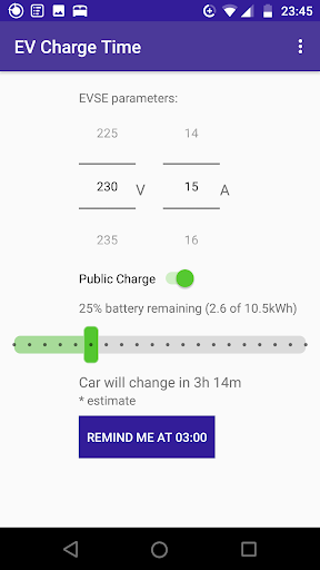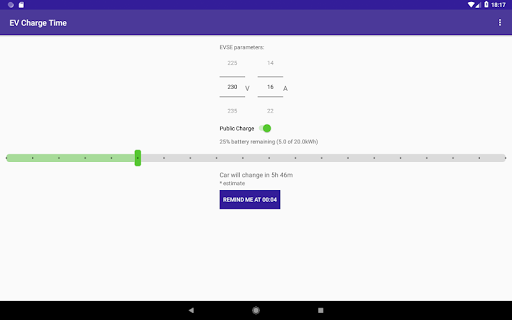 usando Calcolatore di carica EV corrente È possibile fare altre cose mentre l'auto è in carica. Al momento desiderato riceverai una notifica che il tuo EV è caricato e può essere raccolto. Potrebbe essere molto utile se stai spesso usando un caricatore pubblico e dimentica di togliere la tua auto in tempo. Quando si carica EV a casa app può aiutare